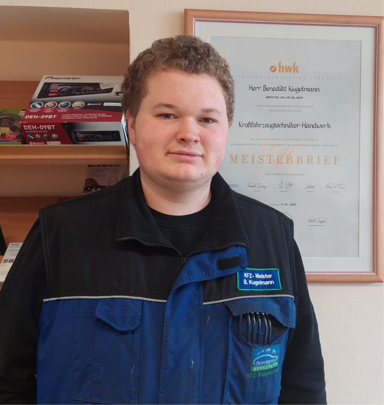 Im Jahr 2022 folgte Sohn Benedikt Kugelmann den Fußstapfen seines Vaters, legte die Meisterprüfung im KFZ-Handwerk mit Auszeichnung ab und ist seitdem zur Unterstützung im Familienbetrieb.